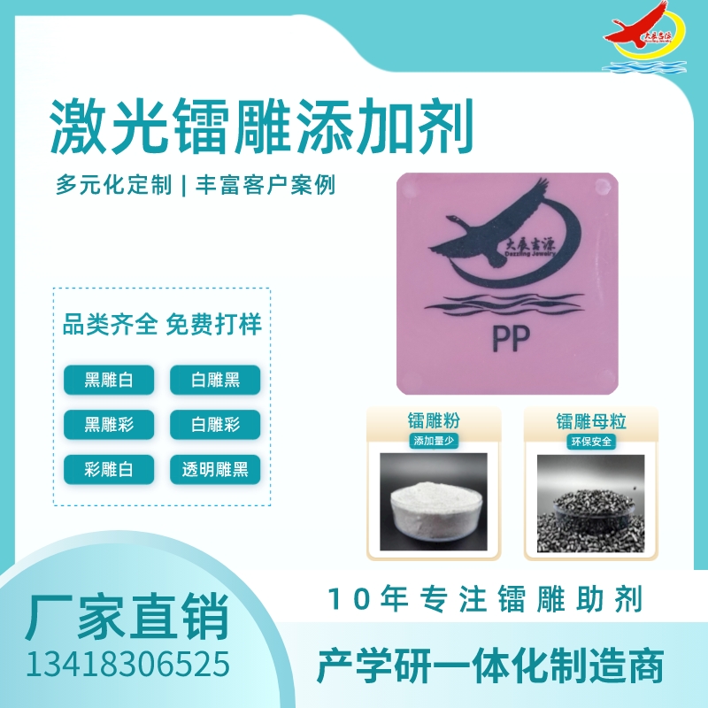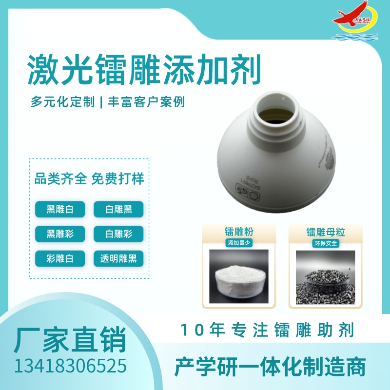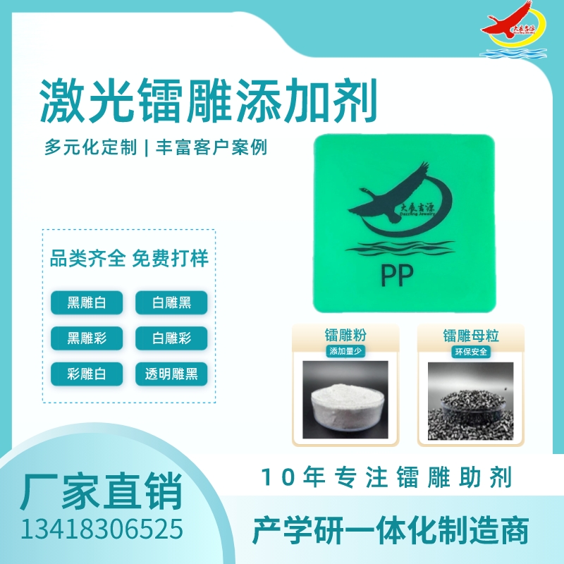 激光粉/镭雕粉/镭雕母粒/激光母粒/激光添加剂可与PP、PE、PA6、PA66、ABS、PS、PBT、PET、PVC、POM、SEBS、TPU、TPE和TPV等材料混合,激光打标的字迹清晰光亮.可标记出黑色.白色字迹.添加量:千分之五至千分之二十,具体情况视塑料的而定,