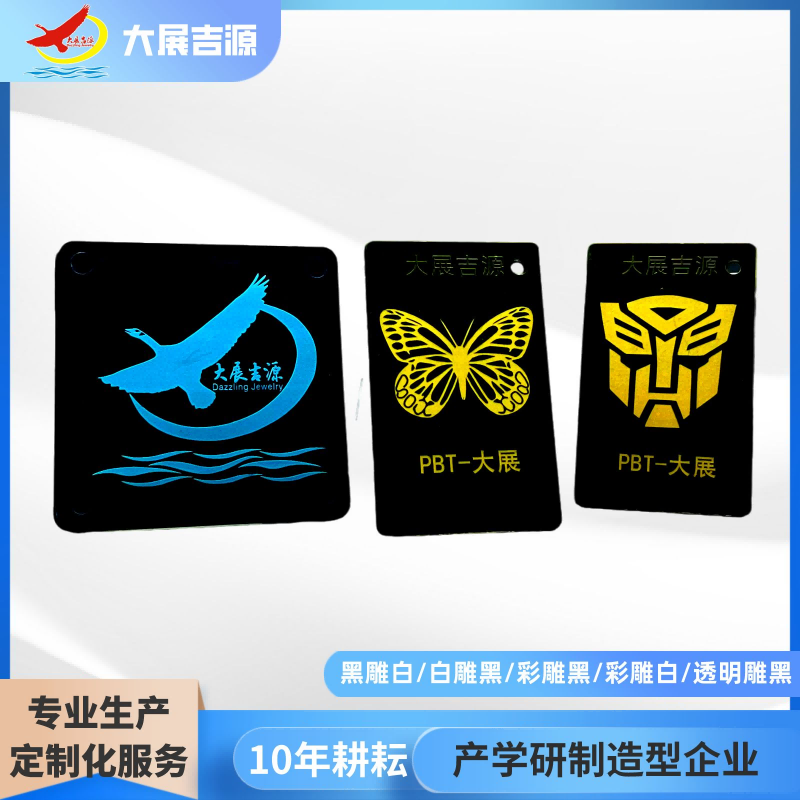 可PP、PE、PA、PBT、PVC、ABS、TPU、PS、TPE、TPV、TPR、PET、PC、POM、PEI、UP、ABE、尼龙、环氧树脂等材料混合,激光打标的字迹清晰光亮。