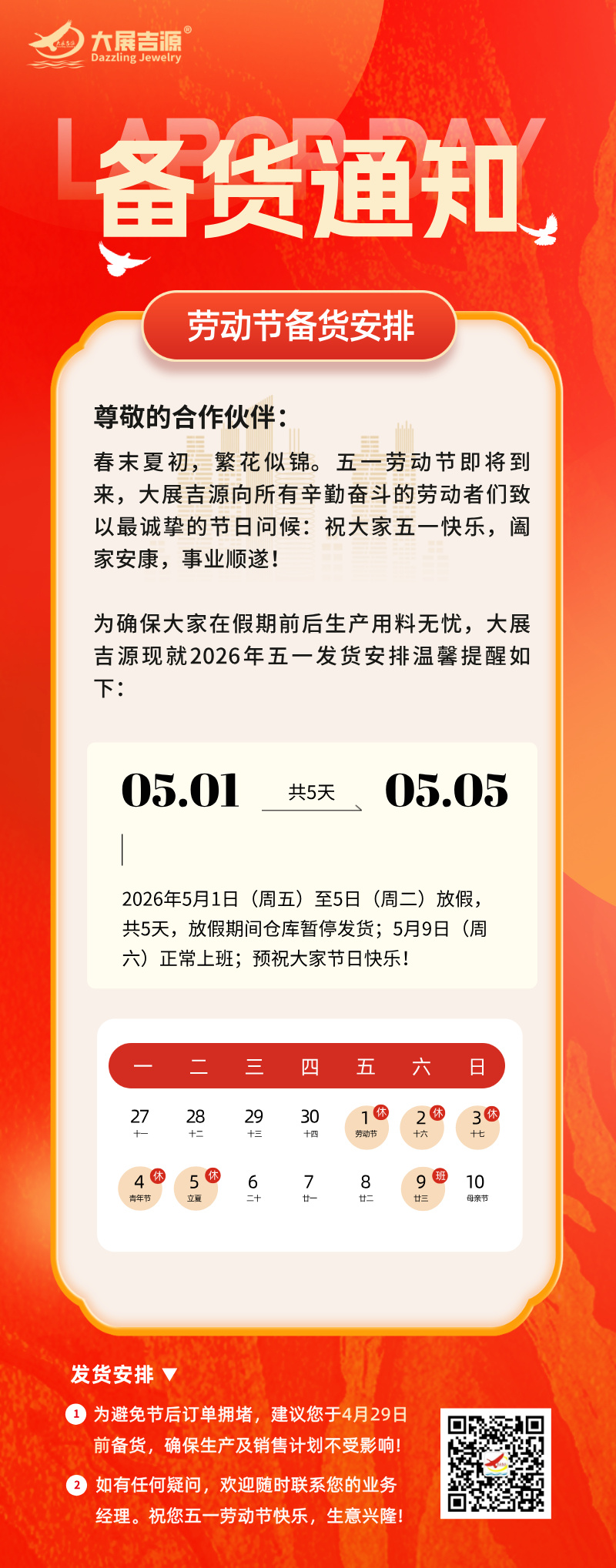 五一快乐 | 大展吉源假期备货提醒,祝您假期无忧!