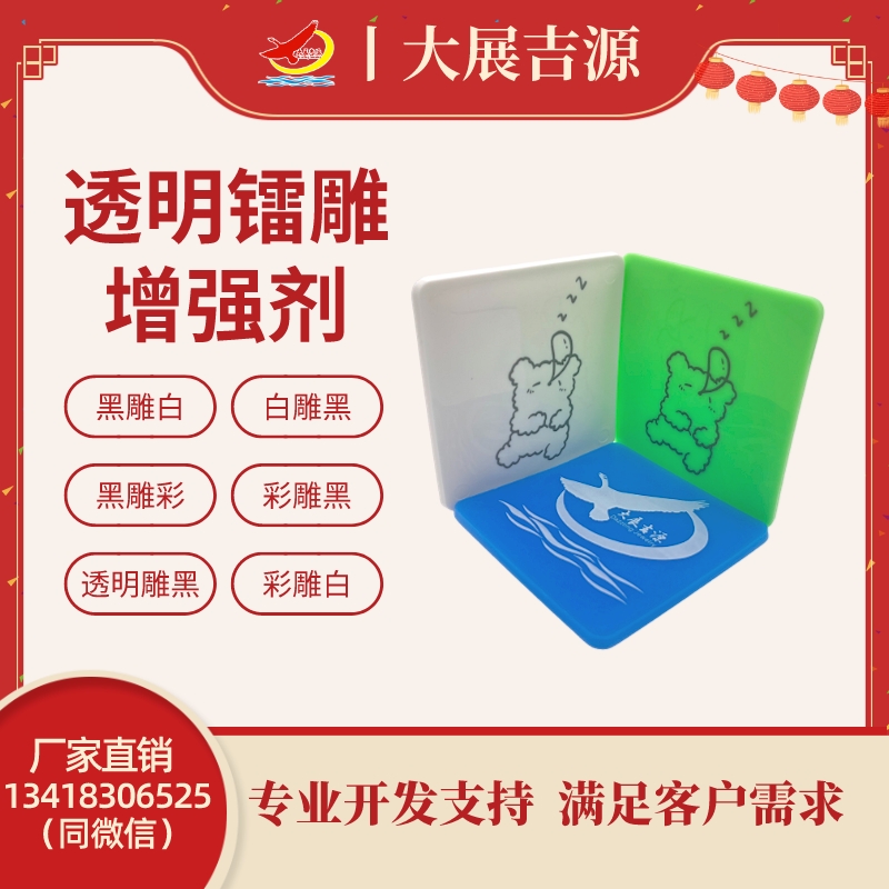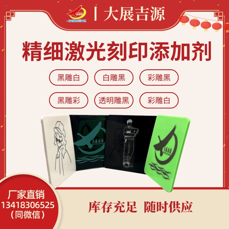 主要功能,吸收激光能量,将激光束转换成热能,对塑料产生加热作用,碳化作用,蒸发作用及化学反应,对于不同化学性质的塑料,深色背景上的浅色激光标记及浅色背景上的深色激光标记有不同的品种